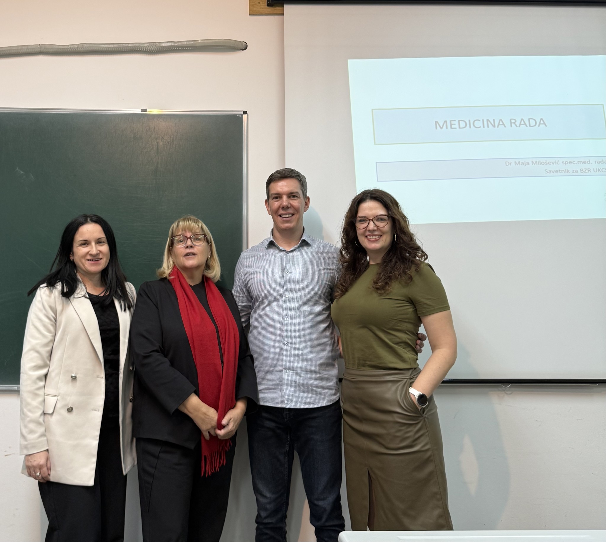 Tokom predavanja, studenti su imali priliku da se upoznaju sa praktičnim aspektima medicine rada, upravljanja bezbednošću i zdravljem na radu, kao i bezbednog upravljanja medicinskim otpadom u zdravstvenim ustanovama. Poseban akcenat stavljen je na značaj interdisciplinarne saradnje, primenu zakonskih propisa i standarda, kao i primere dobre prakse iz realnog radnog okruženja.